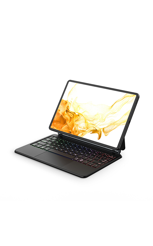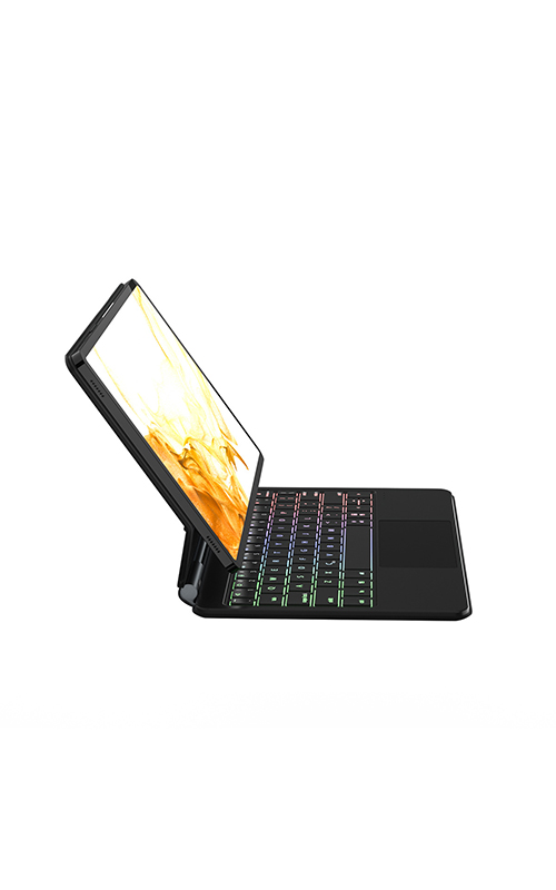 คอมพิวเตอร์แท็บเล็ตเมจิกคีย์บอร์ดใช้การออกแบบขาตั้งแบบลอยที่รองรับการปรับหลายมุม ผู้ใช้สามารถปรับมุมมองของ iPad ได้ตามความต้องการของตนเอง เพื่อให้ได้ประสบการณ์การรับชมและการใช้งานที่สะดวกสบายยิ่งขึ้น ในขณะเดียวกันการออกแบบแบบลอยตัวยังช่วยปรับปรุงการระบายอากาศและการกระจายความร้อนและยืดอายุการใช้งานของผลิตภัณฑ์